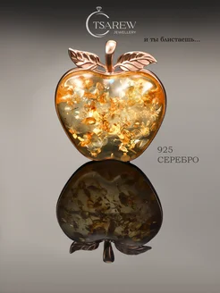 Брошь-подвеска серебро 925 янтарь яблоко
