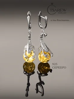 Серьги серебро 925 с янтарем