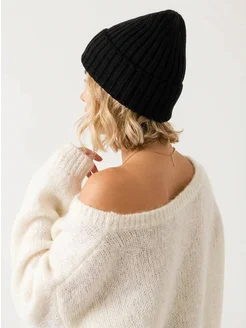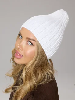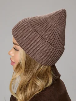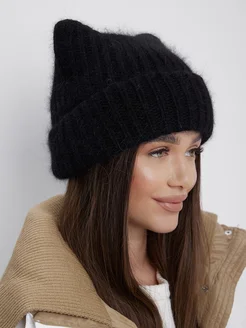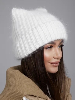Шапка зимняя вязаная из ангоры с отворотом на флисе