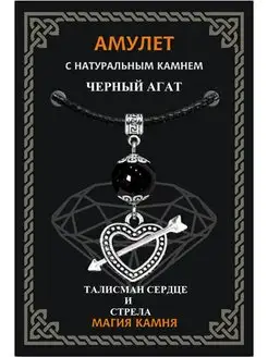 Сердце со стрелой с камнем Черный агат, Талисман, Шнурок