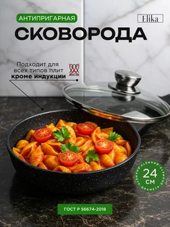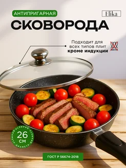 Сковорода 26 см антипригарная с крышкой литая глубокая