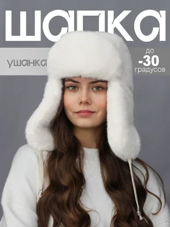 Шапка ушанка зимняя меховая эко мех пушистая молочная
