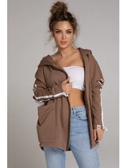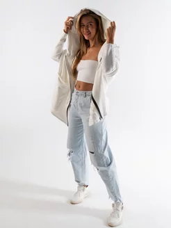 Бомбер на молнии с капюшоном оверсайз
