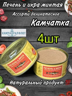 Печень и икра минтая деликатесные Камчатка 4шт по 185 гр