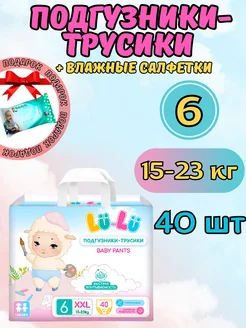 Подгузники-трусики 6 (15-23 кг) 40 шт + влажные салфетки