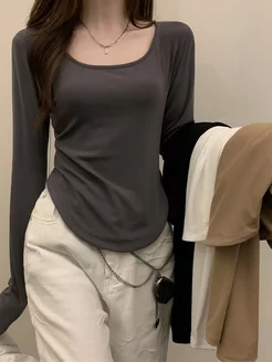 Серый лонгслив женский, кофта с длинным рукавом женская