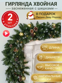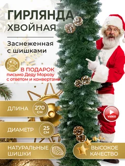 Гирлянда хвойная заснеженная елочная еловая с шишками декор