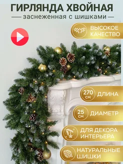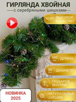 Хвойная гирлянда новогодняя елочная еловая с шишками 160 см