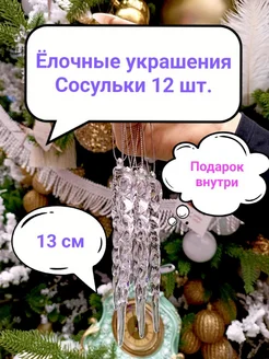 Новогодние украшения игрушки сосульки на елку набор12 штук