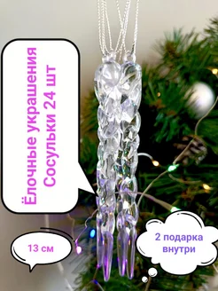 Новогодние украшения игрушки сосульки на елку набор 24 штуки