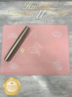 Набор скалка металлическая и силиконовый коврик