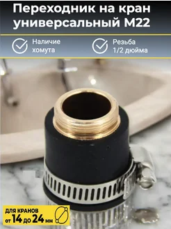 Переходник на кран универсальный с хомутом и резьбой 1 2
