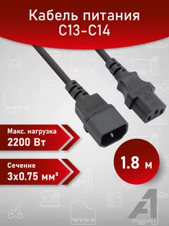 Кабель питания 1.8 м, С13-С14, 3х0.75 мм2