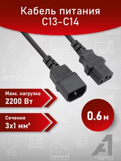 Кабель питания 0.6 м, С13-С14, 3х1 мм2