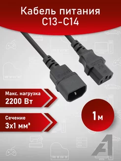 Кабель питания 1 м, С13-С14, 3х1 мм2