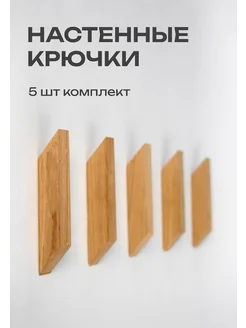 Крючки настенные самоклеящиеся деревянные набор 5 штук
