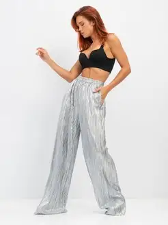 Летние нарядные брюки гофре палаццо блестящие