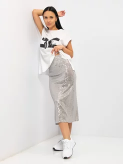 Юбка миди с пайетками серебро блестящая