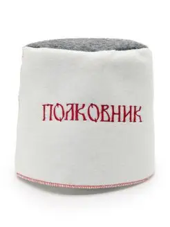 Шапка папаха с вышивкой ПОЛКОВНИК, белый войлок