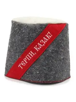 Шапка папаха с вышивкой ТЕРПИ КАЗАК, серый войлок