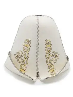 Шапка с вышивкой КАЗАХСКИЙ УЗОР желтый, войлок
