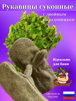 Рукавицы для бани и сауны суконные с двойным наладонником