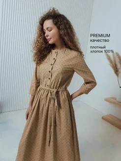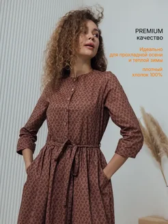 Платье осеннее офисное с рукавом хлопок