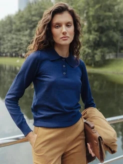 Лонгслив поло однотонный базовый с пуговицами