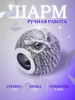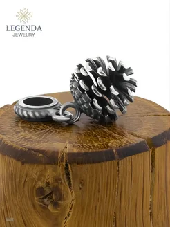 Серебряный шарм стоппер "Дуб" с чернением, для браслета