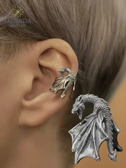 Кафф «Дракон» серебро, моносерьга на левое ухо