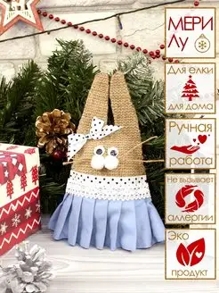 Игрушка-подвес "Крольчиха" из джута и льна 1 шт