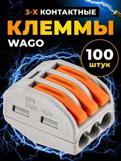 Клеммы для проводов соединительные wago 3 контакта 100 шт