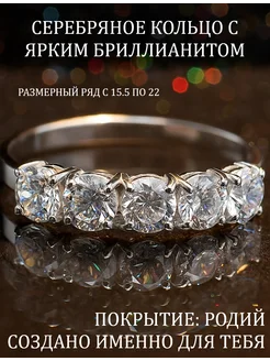 Ювелирное кольцо дорожка серебро 925 с камнем