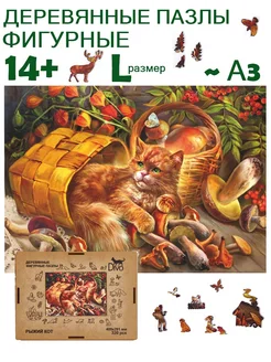 Деревянные пазлы для взрослых и подростков детей Рыжий кот