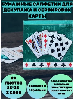 Салфетки бумажные 3слоя 25см 20шт Карты