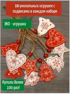 Деревянные елочные игрушки новогодний набор на елку