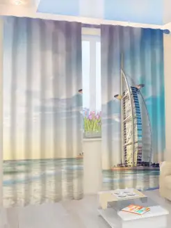 Фотошторы Блэкаут "Отдых в Дубае" на ленте, высота 280 см
