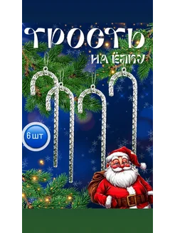 Набор новогодних ёлочных игрушек трость прозрачная 6 шт