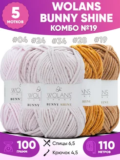Набор плюшевой пряжи Wolans Bunny SHINE 5шт Банни шайн 19