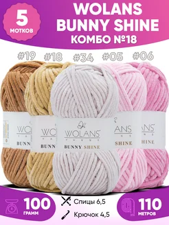 Набор плюшевой пряжи Wolans Bunny SHINE 5шт Банни шайн 18