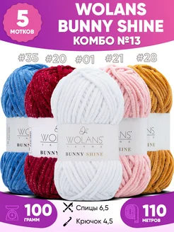 Набор плюшевой пряжи Wolans Bunny SHINE 5шт Банни шайн 13