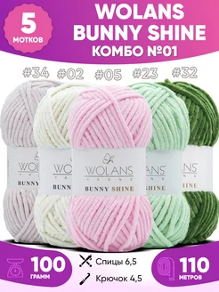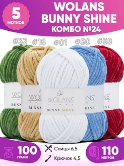 Набор плюшевой пряжи Wolans Bunny SHINE 5шт Банни шайн 24