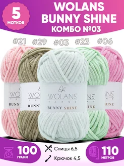 Набор плюшевой пряжи Wolans Bunny SHINE 5шт Банни шайн 03