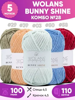Набор плюшевой пряжи Wolans Bunny SHINE 5шт Банни шайн 28