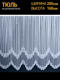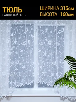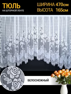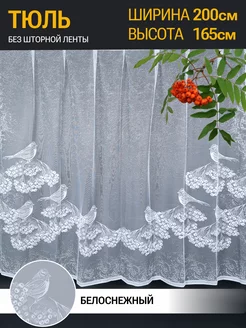 Тюль на кухню короткий с рисунком готовый белый