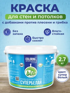 Краска для стен и потолков моющаяся без запаха белая 2.7кг