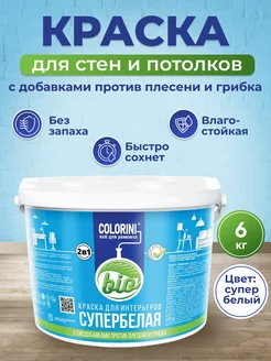 Краска для стен и потолков моющаяся без запаха белая 6 кг