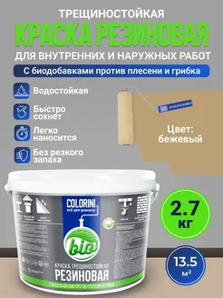 Краска трещиностойкая резиновая 2.7 кг бежевая, матовая