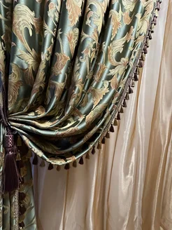 шторы с рисунком и бахромой в зал спальню 2 шт.+2 кисти
