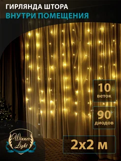 Гирлянда штора 2х2 м на стену Теплый свет новогодняя